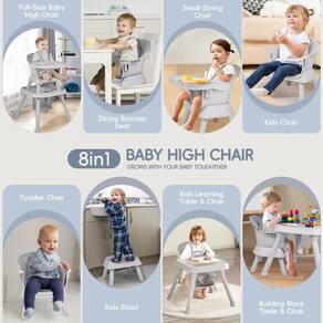 - ?? - ????? ? Alternar facilmente entre 8 modos versáteis: cadeira alta de tamanho completo, assento elevatório de jantar, cadeira de jantar pequena, cadeira de criança, cadeira infantil, banquinho infantil, mesa e cadeira de aprendizagem infantil e mesa e cadeira de blocos de construção. Projetado para crescer com seu filho desde a infância até a infância.