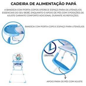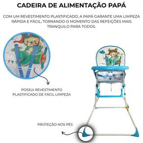 Cadeira alta de alimentação infantil com porta copo papá azul avião Cadeira alta de alimentação infantil papá azul avião Código: hc15d Com um revestimento plastificado, a papá garante uma limpeza rápida e fácil, tornando o momento das refeições mais tranquilo para todos. Equipada com proteção lateral e um cinto de segurança de cinco pontos, a papá oferece um ambiente seguro e confortável para o seu bebê durante as refeições. Com uma estrutura em aço e pintura epóxi de linha premium, a papá combina durabilidade com um design elegante, garantindo que ela se adapte perfeitamente a qualquer ambiente. A bandeja com porta-copos oferece espaço para os utensílios essenciais do seu bebê, enquanto o apoio de pés com três posições de ajuste garante conforto adicional durante as refeições. Com uma trava de segurança, a papá oferece tranquilidade aos pais, garantindo que a cadeira permaneça estável durante o uso. A papá é projetada para facilitar o transporte e o armazenamento, sendo fácil de desmontar quando necessário. Principais características: Possui revestimento plastificado de fácil limpeza; Proteção lateral; Possui cinto de segurança 5 pontos Estrutura em aço, pintura epóxi linha premium Bandeja com porta-copos Apoio de pés com 3 posições de ajuste Trava de segurança Fácil desmontagem Capacidade máxima 15 kg Registro do produto no inmetro: 003348/2023 Dimensões: - medida da cadeira aberta: 100x43x74 axlxp : 12 meses direto com o fabricante Marca: Não Informado