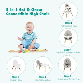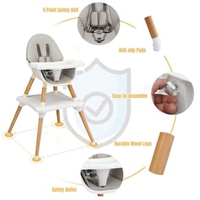 Descrição: Esta é a nossa cadeira alta 5 em 1, que combina a inspiração estética do design de móveis infantis e o conceito ergonômico de crescimento do bebê. Com uma bandeja grande removível e ajustável, pode dar ao seu bebê um bom lugar para comer, brincar, aprender e descansar. E o design conversível 5 em 1 permite que nossa cadeira alta seja convertida em uma cadeira alta de alimentação para bebês, uma cadeira infantil com guarda-chuva, uma mesa comum ou uma cadeira comum para atender às necessidades do bebê em diferentes idades. Além disso, feita de materiais seguros e duráveis, a qualidade da nossa cadeira é confiável. O cinto de segurança de 5 pontos pode efetivamente impedir que seu bebê se incline para frente ou deslize para fora. Se você está procurando uma cadeira alta que possa dar ao seu bebê uma experiência confortável, esta será sua escolha ideal! Características: Atende a diferentes necessidades de crescimento com design conversível 5 em 1 O material ecológico e seguro garante a segurança do bebê. Faia sólida e estrutura estável garantem excelente capacidade de carga Almofada removível de poliuretano, macia e confortável As pernas com almofadas para os pés evitam efetivamente o deslizamento e evitam arranhar o chão O cinto de segurança de 5 pontos evita efetivamente que o bebê se incline para frente ou deslize para fora A bandeja removível e ajustável em 4 estágios oferece um lugar para o seu bebê brincar e comer Fácil de montar com instruções detalhadas e todas as ferragens necessárias. Especificações: Cor: Café Material: PP + PU + Faia Dimensão do produto: 61 cm x 61 cm x 90 cm (C x L x A) Tamanho da cadeira: 39 x 39 x 63 cm (C x L x A) Tamanho da mesa: 61 cm x 61 cm x 40 cm (C x L x A) Peso do produto: 5,9 kg Capacidade de peso: 15 kg Idade adequada: 6 meses a 6 anos A embalagem inclui: 1 cadeira alta para bebês de 12,7 cm 4 puxadores fixos. 1 manual do utilizador (idioma português não garantido). - Cadeira alta conversível 5 em 1: todos sabemos que as crianças crescem muito rápido, então nossas cadeiras são projetadas para serem facilmente convertidas em uma cadeira alta, assento elevatório infantil com guarda-corpos, mesa e cadeira infantil, assento infantil ou um banco comum. O design 5 em 1 atende às diversas necessidades dos bebês em todas as fases de seu crescimento. - Cinto de segurança de 5 pontos e estrutura estável: o cinto de segurança de 5 pontos com comprimento ajustável pode manter o bebê firmemente no lugar sem inclinar-se para frente e cair. O design do cinto de segurança pode evitar que seu bebê se machuque quando deixado sem supervisão. Além disso, a estrutura firme da pirâmide tem forte estabilidade. - Bandeja ajustável e destacável de 4 estágios: a bandeja removível facilita o processo de limpeza. O que você precisa fazer é simplesmente soltar o prato conveniente e movê-lo para a pia para um enxágue completo. E 4 posições ajustáveis podem proporcionar mais espaço para crianças em rápido crescimento. - Material ecológico e seguro: Feito de PP e PE de grau alimentício, nossa cadeira alta multifuncional não é tóxica e inodora. Portanto, a saúde do bebê não será prejudicada. As pernas são feitas de madeira de faia de alta qualidade, que é resistente e pode proporcionar longa vida útil. - Fácil instalação e processo de limpeza: com instruções detalhadas e todos os acessórios necessários, você pode facilmente concluir a montagem desta cadeira de jantar. E a almofada de poliuretano removível e removível torna todo o processo de limpeza simples e fácil.