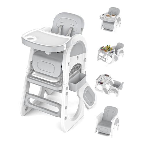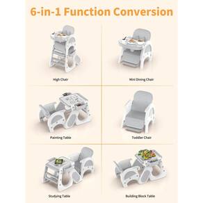- Cadeira alta para bebês com 6 funções: a cadeira alta conversível multifuncional tem uma variedade de modos de converter: cadeira alta de tamanho completo, mini cadeira de jantar, mesa e cadeira de blocos de construção, mesa de estudo, cadeira infantil com almofada acolchoada, mesa infantil e conjunto de cadeira. A mesa tem um lado ranhurado e um lado liso para diferentes usos. Modo de cadeira de jantar: 6 meses a 3 anos / Modo mesa e cadeira: 4 a 8 anos de idade. Capacidade de carga de 50 kg.