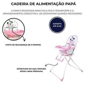 Cadeira alta de alimentação infantil papá rosa coala Cadeira alta de alimentação infantil rosa coala Código: hc15d Com um revestimento plastificado, a papá garante uma limpeza rápida e fácil, tornando o momento das refeições mais tranquilo para todos. Equipada com proteção lateral e um cinto de segurança de cinco pontos, a papá oferece um ambiente seguro e confortável para o seu bebê durante as refeições. Com uma estrutura em aço e pintura epóxi de linha premium, a papá combina durabilidade com um design elegante, garantindo que ela se adapte perfeitamente a qualquer ambiente. A bandeja com porta-copos oferece espaço para os utensílios essenciais do seu bebê, enquanto o apoio de pés com três posições de ajuste garante conforto adicional durante as refeições. Com uma trava de segurança, a papá oferece tranquilidade aos pais, garantindo que a cadeira permaneça estável durante o uso. A papá é projetada para facilitar o transporte e o armazenamento, sendo fácil de desmontar quando necessário. Principais características: Possui revestimento plastificado de fácil limpeza; Proteção lateral; Possui cinto de segurança 5 pontos Estrutura em aço, pintura epóxi linha premium Bandeja com porta-copos Apoio de pés com 3 posições de ajuste Trava de segurança Fácil desmontagem Capacidade máxima 15 kg Registro do produto no inmetro: 003348/2023 Dimensões: - medida da cadeira aberta: 100x43x74 axlxp : 12 meses direto com o fabricante Marca: Não Informado