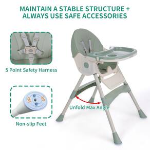 Cadeira alta dobrável Cochildor para bebês e crianças pequenas verde