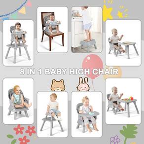 TODEFULL A cadeira alta para bebês é feita de materiais PP de alta qualidade, seguros e duráveis. Equipada com uma bandeja ajustável de 3 posições, esta cadeira alta para bebês e crianças pequenas pode atender às necessidades de crianças em crescimento. E o assento de bebê com bandeja não tem pontas afiadas ou as bordas podem ser limpas com uma máquina de lavar louça, proporcionando a máxima conveniência para você. Esta cadeira de assento de bebê 8 em 1 atende às várias necessidades do crescimento do bebê, que é o presente perfeito para o bebê. - Cadeira alta para bebês 8 em 1: nossa cadeira alta para bebês é conversível; 1. cadeira alta de alimentação de tamanho normal; 2. assento elevatório para bebês; 3. conjunto de mesa e cadeira de bebê; 4. mesa de bloqueio; 5. cadeira de jantar pequena; 6. cadeira universal infantil; 7. banquinho individual infantil; 8. banquinho individual - Design seguro e confortável: esta cadeira de alimentação para bebês vem com um arnês ajustável de 5 pontos, que pode proteger a segurança do bebê; a estrutura robusta da pirâmide com 4 almofadas antiderrapantes adiciona segurança adicional e protege o chão de arranhões - Converta para assento elevatório: pegue a parte inferior das pernas e fixe na cadeira com a alça de assento incluída, você receberá um assento elevatório para bebês! Permita que seu bebê se sente mais alto para participar da festa ou desfrutar de comida com os pais no restaurante - Fácil de montar e limpar: graças ao design de travamento automático, você pode instalar esta cadeira de jantar para bebês facilmente e rapidamente sem ferramentas; a bandeja removível com ajuste de 3 posições é feita de materiais PP de alta qualidade, seguros e fáceis de limpar - Boa escolha para o seu bebê: esta cadeira alta com bandeja é muito versátil e pode atender à série de necessidades de crianças de 6 a 36 meses; vários modos de conversão são muito convenientes e rápidos, adequados para feriados, festivais, dia das crianças
