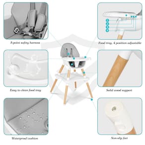 - ?Materiais ecológicos e seguros?---Os produtos excelentes devem ser de bom design e materiais de qualidade, nossa cadeira alta multifuncional é feita de materiais seguros para crianças de grau alimentício, não tóxicos e inodoros. As pernas são feitas de madeira de faia de alta qualidade, resistente e durável, a almofada de assento é macia e amiga da pele.