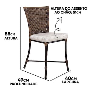 ESPECIFICAÇÕES TÉCNICAS: Cadeira Angra em alumínio: - Altura total: 87cm - Altura Assento ao chão: 50cm - Largura: 40cm - Profundidade: 50cm - Suporta até 170kg - Assento almofadado com tecido impermeável