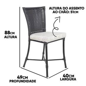 ESPECIFICAÇÕES TÉCNICAS: Cadeira Angra em alumínio: - Altura total: 87cm - Altura Assento ao chão: 50cm - Largura: 40cm - Profundidade: 50cm - Suporta até 170kg - Assento almofadado com tecido impermeável