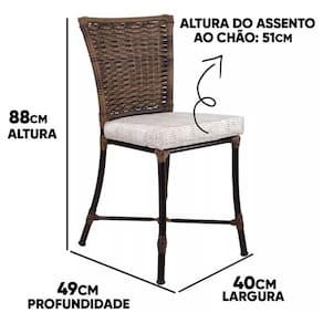 Dimensoes Cadeira Angra em aluminio: Altura total: 87cm Altura Assento ao chao: 50cm Largura: 40cm Profundidade: 50cm Suporta ate 170kg