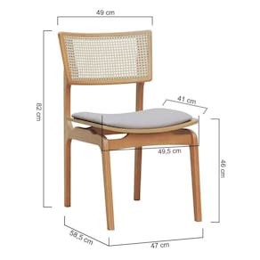 - Materiais: Estrutura em madeira de eucalipto, encosto com telinha sextavada aplicada e assento anatômico envernizado