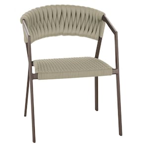 Cadeira Atenas Tricô Náutico e Alumínio com Proteção UV para Varanda, Cozinha, Área, Jardim - Pintura Marrom - Bege