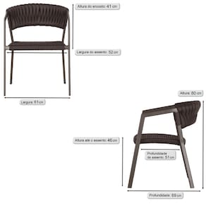 Cadeira Atenas Tricô Náutico e Alumínio com Proteção UV para Varanda, Cozinha, Área, Jardim - Pintura Marrom
