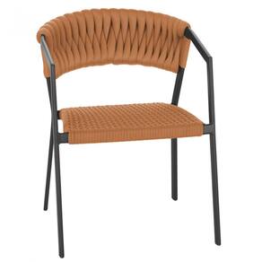 Cadeira Atenas Tricô Náutico e Alumínio com Proteção UV para Varanda, Cozinha, Área, Jardim - Pintura Preta - Laranja