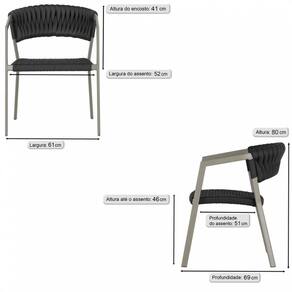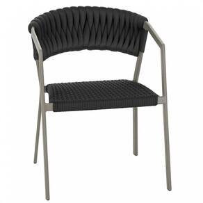 Cadeira Atenas Tricô Náutico e Alumínio com Proteção UV para Varanda, Cozinha, Área, Jardim - Preto