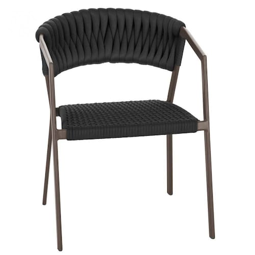 Cadeira Atenas Tricô Náutico E Alumínio Varanda Cozinha Marr Preto