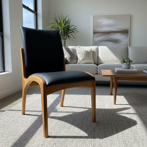 Cadeira Aura Estofada Estrutura Em Madeira Maciça Courino Preto Conforto Para Sala De Jantar Mobília Decor Cadeira Aura Alta alia elegância e resistência, com estrutura em madeira maciça que assegura solidez e longa vida útil, enquanto o assento e o encosto em courino marrom garantem praticidade de limpeza e visual sofisticado. Projetada para ergonomia e conforto, eleva salas de jantar, cozinhas e ambientes corporativos com acabamento versátil e refinado. Medidas do produto: