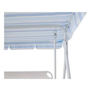 Cadeira de balanco para 3 pessoas, listrada nas cores verde e branco, da marca Just Home Collection. Ideal para momentos de relaxamento e lazer no seu jardim ou varanda. Suporta ate 220 kg, garantindo seguranca e conforto para voce e sua familia. Feita com material de alta qualidade, sendo 100% poliester e aco.