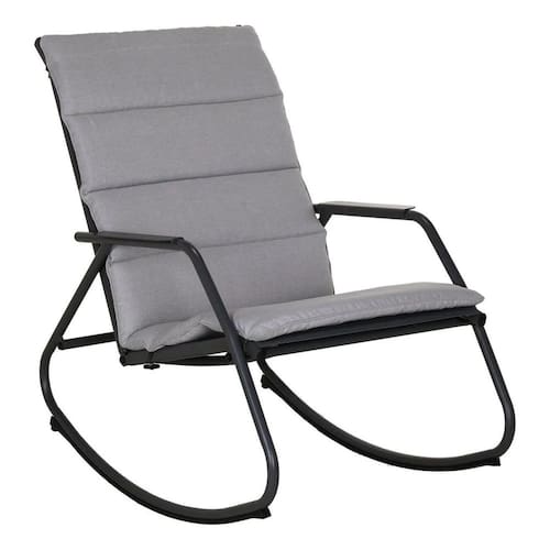 Projetada para oferecer durabilidade e praticidade, esta cadeira de balanco e fabricada em aco de alta resistencia, garantindo estabilidade e longevidade. Sua estrutura robusta suporta uso continuo, enquanto a dimensao de 90x61cm proporciona o equilibrio ideal entre conforto e otimizacao de espaco. O material em aco e facil de limpar, exigindo minima manutencao para conservar sua aparencia impecavel por muito mais tempo, ideal para resistir as condicoes externas.