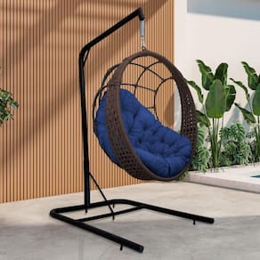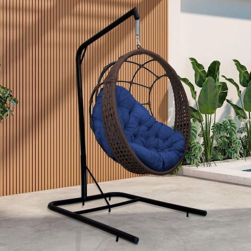 Cadeira Balanço Ninho Suspenso Em Corda Náutica Luxo Com Suporte Marrom-azul
