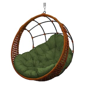 Cadeira Balanço Ninho Suspenso Em Corda Náutica Luxo Ocre/verde