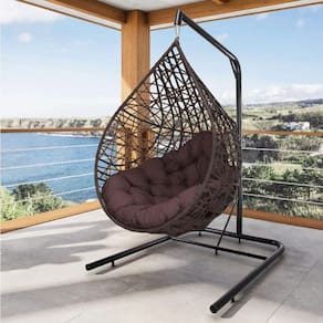 Cadeira Balanço Ninho Suspenso Gota Tramado Com Suporte E Almofada Impermeável Acesse Móveis Tabaco Com Marrom