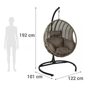Tipo: Sillón colgante (Cadeira Suspensa) Material: Estrutura de metal e poliratán com almofada de poliéster Dimensões: Altura 192 cm | Largura 122 cm | Profundidade 101 cm Peso Máximo Suportado: 100 kg Estilo: Boho Chic Cor: Natural Origem: Produto Importado Garantia: 3 meses Inclui: Cojin (almofada) e suporte Observações: Não é dobrável ou empilhável, ideal para ser fixada em um local específico do ambiente. Consulte o manual de montagem e instalação para garantir o uso correto e seguro.