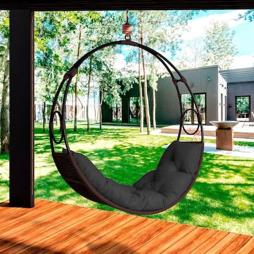 Cadeira Balanço Suspenso Lua Em Corda Náutica Marrom/preto A Cadeira Balanco Suspenso Lua e a escolha perfeita para transformar qualquer espaco em um ambiente aconchegante e elegante. Com sua construcao robusta e materiais de alta qualidade, esta cadeira oferece resistencia e durabilidade. Fabricada em aco carbono com pintura eletrostatica, sua estrutura garante protecao contra corrosao e um visual moderno. O acabamento em corda nautica de alta qualidade, com resistencia UV, nao so proporciona uma protecao eficaz contra os raios solares, mas tambem adiciona um toque sofisticado a cadeira, mantendo sua aparencia impecavel por muito mais tempo. O assento e equipado com uma almofada confeccionada em espuma D28, conhecida por seu excelente suporte e conforto. Revestida com tecido impermeavel, a almofada facilita a manutencao e e resistente a umidade, tornando-a ideal para uso em ambientes internos e externos. A fabricacao artesanal totalmente da cadeira garante um toque unico e diferenciado, fazendo de cada peca uma obra de arte exclusiva. Para completar, a Cadeira Balanco Suspenso Lua vem com uma mola e um mosquetao de alta qualidade para o encaixe, proporcionando uma instalacao facil e uma experiencia de balanco suave e segura. Seja para relaxar na varanda, no jardim ou ate mesmo dentro de casa, esta cadeira combina conforto e funcionalidade, criando um refugio acolhedor em qualquer lugar. ESPECIFICACOES TECNICAS: - Marca: Acesse Moveis; - Modelo:Cadeira l Balanco Suspenso Lua em Corda Nautica; - Material da Estrutura: Aco Carbono; - Acabamento: Corda Nautica com anti-UV; - Material do Assento: Impermeavel - Enchimento do Assento: Espuma D28; - Acompanha Almofada? Somente a almofada do assento; - Possui Corrente? Acompanha mola e mosquetao; - Garantia: 3 Meses; - Suporta Ate (kg): 150kg; - Necessita de Montagem?(Sim/Nao): Sim, necessita somente de um encaixe; - Medidas (LarguraxProfundidadexAltura): 140x50x140cm; Marca: ACESSE MÓVEIS
