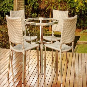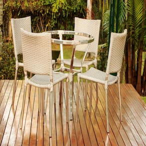 Nossos produtos são de altíssima qualidade e com design moderno, garantindo assim conforto e praticidade para seu bem-estar. Produzidos em estrutura de alumínio polido e revestida em fibra sintética. Mais leve e resistente do que o Ferro, o Alumínio também pode ser molhado, pois não enferruja. Possuem proteção UV, aumentando sua durabilidade contra abrasoes do tempo. Podendo ficar exposto à sol e chuva por bastante tempo. Ideais para decorar ambientes clássicos e modernos como: Cozinha, Sala, Quarto, Varanda, Edícula, Piscina, Jardim, Área de lazer, Festa, Reunião, Churrasco. Disponibilizamos diversas opções de cores.  Fibra Sintética especial Resistente ao Sol e chuva com proteção UV. A fibra sintética da Trama /UP Mobille produzida com materiais de altíssima qualidade. Essa característica oferece resistência suficiente para o móvel ser utilizado em decorações de ambientes externos - sem preocupações com sol ou chuva. Estrutura em Alumínio â Soldado na solda MIG, de alta resistência, alta durabilidade e garantia de 1 ano de fábrica. Produzida em estrutura de alumínio polido, durabilidade cerca de 8 a 10 anos, material pode ser molhado e utilizado em Áreas abertas, exposto a sol e chuva. Design Moderno Combina em vários ambientes com traços modernos e clássicos, para todos os gostos! Fácil de Limpar Utilize Sabão Neutro para a limpeza das fibras e estruturas. Para deixar o alumínio brilhoso, poderá ser passado cera automotiva em pouca quantidade, mantendo assim o brilho de suas peças. Passe um pouco de cera com um pano macio, logo em seguida, passe outro pano macio, porém seco para retirar a cera. Deixando assim, com o brilho novamente!