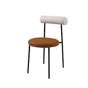 Cadeira Base de Aço e Assento e Encosto Estofados Roll Bege e Caramelo