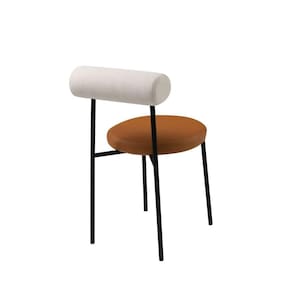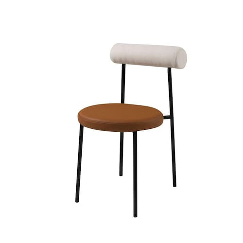Essa cadeira possui um design elegante e moderno, destacando-se pelo encosto em formato de rolinho, proporcionando um suporte confortável. . O assento, por sua vez, é circular, proporcionando uma experiência agradável ao usuário. Sua forma indireta contribui para uma distribuição equilibrada do peso, promovendo conforto durante longos períodos de uso. O estofamento do assento é macio e durável, garantindo uma sensação agradável ao toque.
