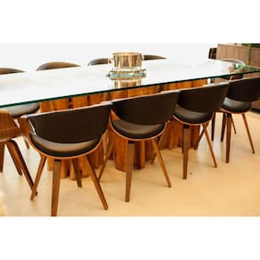 Cadeiras com detalhe de madeira fazem o maior sucesso nas mesas de jantar, pois são resistentes e se encaixam em qualquer tipo de decoração. A cadeira Nicole é perfeita para seu ambiente, tem design clássico que já é queridinho de quem busca elegância e conforto, além da facilidade de ser giratória. Cadeira giratória para uso ambiente interno, com estrutura em madeira compensada com assento e encosto estofado em revestimento em Linho. Encosto não reclinável, não possui ajuste de altura, possui braços. Base sustentada em quatro pernas de apoio. Acabamento da Estrutura: Verniz Almofada do assento: Fixa Altura do assento até o chão: 50 cm Ambiente Principal: Sala de Jantar Apoio para Braços Estofado: Não Complexidade da Montagem: Baixa: pode ser montado por uma pessoa sozinha Cor: Preto Cor do Produto: Preto Dobrável: Não Enchimento do Assento: Espuma D-24 Enchimento do Encosto: Espuma D-24 Escala de Brilho: Fosco Estrutura do Assento: Madeira Álamo, espuma e Linho 100% poliéster Estrutura do Encosto: Madeira Álamo, espuma e Linho 100% poliéster Giratória: Sim Informações Complementares: Cadeira giratória para uso ambiente interno, com estrutura em madeira compensada com assento e encosto estofado em revestimento em Linho. Encosto não reclinável, não possui ajuste de altura, possui braços. Base sustentada em quatro pernas de apoio. Itens Inclusos: 1 Cadeira, material para montagem e Manual de Instruções. Linha ou Coleção: Cadeiras Manual de Montagem e Instalação: https://cdn2.madeiramadeira.com.br/atributo/rivatti/871678-manual-cadeira-nicole-girat-ria.pdf Material da Base: Madeira Necessita Montagem: Sim Origem do Produto: Importado Peso: 6,7 kg Possui Apoio para Braços: Sim Possui Apoio Para os Pés: Não Possui Rodízio: Não Recomendações de Uso, Manutenção e Limpeza: Uso interno. Não expor ao sol ou umidade. Não exceder a capacidade de peso de 120kg. Partes em aço não possuem garantia em regiões litorâneas. Limpar com pano macio umedecido em solução de água e sabão neutro e secar em seguida. Não utilizar produtos químicos ou abrasivos. Revestimento do Assento: Linho 100% poliéster Revestimento do Encosto: Linho 100% poliéster Sistema de Montagem: Parafusos e encaixe Tipo de Assento: Fixo Tipo de Encosto: Fixo