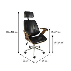 Cadeira Bergen Alta Preta possui Estrutura em madeira e espuma com revestimento em PU. Base cromada com sistema relax e rodas que não danificam o piso. . Medidas: Altura do chão ao assento: 54 a 64cm / altura do chão ao braço: 71 a 81cm / altura do chão ao encosto: 116 a 126cm / largura: 61cm / comprimento: 53cm