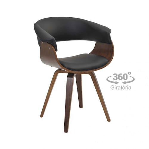 A Cadeira Betina já é conhecida por seu design diferenciado e conforto. Agora ela tem a versão com base giratória que é ideal para salas de estar, salas de descanso e também ambientes corporativos. A Cadeira que você já conhece em uma nova versão com detalhes que agregam! Acabamento da Estrutura: Verniz Almofada do assento: Fixa Altura do assento até o chão: 49 cm Apoio para Braços Estofado: Sim Complexidade da Montagem: Baixa: pode ser montado por uma pessoa sozinha Cor: Preto Cor do Produto: Preto Dobrável: Não Enchimento do Assento: Espuma D-24 Enchimento do Encosto: Espuma D-18 Escala de Brilho: Semi-Brilho Estrutura do Assento: Madeira Álamo Estrutura do Encosto: Madeira Álamo Giratória: Sim Informações Complementares: CADEIRA COM ASSENTO GIRATÓRIO PARA UTILIZAÇÃO EM AMBIENTES INTERNOS, COM ARMAÇÃO CONSTITUÍDA EM MADEIRA COMPENSADA E DE ÁLAMO. ASSENTO E ENCOSTO ESTOFADOS COM REVESTIMENTO EM POLIURETANO (PU). BASE CONSTITUÍDA POR 4 PERNAS DE MADEIRA PARA SUSTENTAÇÃO. Itens Inclusos: 1 Cadeira e Manual de Montagem Linha ou Coleção: Cadeiras Manual de Montagem e Instalação: https://cdn2.madeiramadeira.com.br/atributo/rivatti/622988-manual-betina-girat-ria-aj20.pdf Material da Base: Madeira Álamo Necessita Montagem: Sim Origem do Produto: Importado Peso: 9 kg Possui Apoio para Braços: Sim Possui Apoio Para os Pés: Não Possui Rodízio: Não Recomendações de Uso, Manutenção e Limpeza: Uso interno. Não expor ao sol ou umidade. Não exceder a capacidade de peso. Limpar com pano macio umedecido em solução de água e sabão neutro e secar em seguida. Não utilizar produtos químicos ou abrasivos. Revestimento do Assento: Poliuretano Revestimento do Encosto: Poliuretano Sistema de Montagem: Parafusos Suporta Até (kg): 120 kg Tipo de Assento: Fixo Tipo de Encosto: Fixo Tipo de Madeira Maciça: Perfil