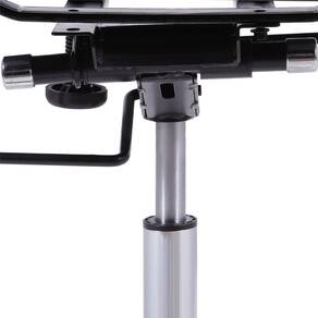 Material: Assento em PU com estrutura cromada. Sistema relax com travamento. Base de encaixe metalizado. Rodas em PU que não danificam o piso