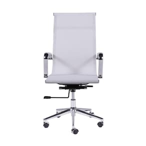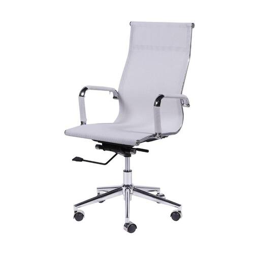 Produto: Cadeira Boxbit Eames Office Tela Alta Tela Branca Base Rodízio Cromada