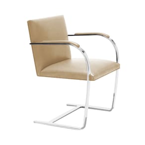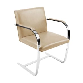 Características Tipo: Cadeira Modelo: Brno Tecido: Couro Natural Cor: Bege Base: Barra Chata Cromada Estrutura resistente Uso em ambientes internos