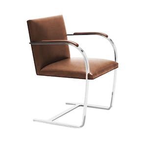 AS IMAGENS SÃO MERAMENTE ILUSTRATIVAS E PODEM SOFRER VARIAÇÕES DE COR E PEQUENOS DETALHES DE ACORDO COM O SEU MONITOR, ILUMINAÇÃO DO AMBIENTE E ATÉ MESMO A SUA PERCEPÇÃO VISUAL.Cadeira Brno Couro Natural Marrom Barra Chata Cromada