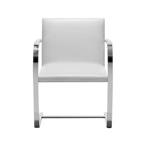 Características Tipo: Cadeira Modelo: Brno Tecido: Couro Sintético Cor: Branco Base: Barra Chata Cromada Estrutura resistente Uso em ambientes internos