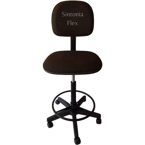 Cadeira caixa alta com aro e com rodízio preto pra recpçao balcao mercado tecido preto Cadeira caixa - com regulagem de altura a gás - estrela de ferro com rodízios - prolongador de tamanho - madeira