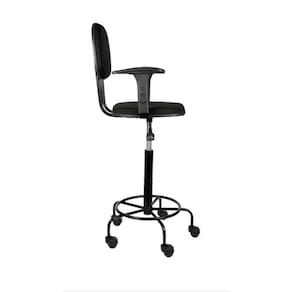 Cadeira secretaria caixa alta - braço com regulagem - apoio para os pés - estrela de ferro com rodizios - espuma injetada - madeira reflorestada - bordas em pvc flexivel - revestido em tecido j. serrano anti-chama - prolongador de altura