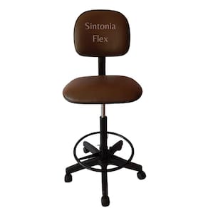 Cadeira caixa alta com aro e com rodízio corano marrom Cadeira caixa - com regulagem de altura a gás - estrela de ferro com rodízios - prolongador de tamanho - madeira