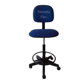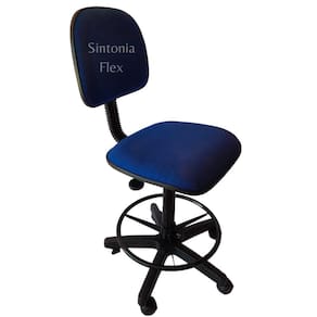 Cadeira caixa alta com aro e com rodízio tecido azul