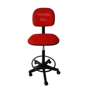 Cadeira caixa alta com aro e com rodízio tecido vermelho Cadeira caixa - com regulagem de altura a gás - estrela de ferro com rodízios - prolongador de tamanho - madeira
