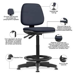 ColorSimple: Azul | ProductInstructions: Produto para uso em ambiente interno, nao devendo ficar exposto ao sol, calor e umidade excessivos. | Modelo detalhado: Work Caixa Alta | ColorSupplier: PretoAzul | Modelo: Work | ProductWeight: 13 kg | Formato de venda: Unitário | OriginCountry: | Tipo de cadeira de escritório: Caixa Alta | ProductLength: 64 cm | Cor: PretoAzul | Requer montagem: Sim | ColorFamily: Azul | Material do estofamento: Espuma ível de Poliuretano injetado | Model: Work | OriginState: PR | ProductWidth: 98 cm | ProductHeight: 63,5 cm | Com rodas: Sim | Material: Espuma ível de Poliuretano injetado, Tubo Aço Carbono, Polipropileno | SizeDescription: Altura: 63,5 cm x Largura: 98 cm x Profundidade: 64 cm | Com apoio de braços: Não | Com aro para pés: Sim | SupplierSimpleName: Cadeira Caixa Alta Giratória Estofada Work F02 Sintético Azul - Lyam Decor | ProductContents: 01 Cadeira | Color: Azul | ProductWarranty: 90 dias após o do produto