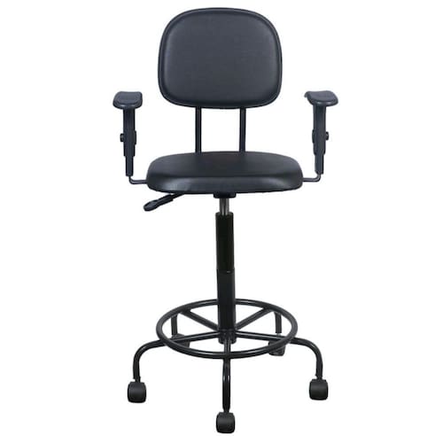 Cadeira caixa alta l duplo com braço base semi corano preto Cadeira caixa alta - com l duplo - braço com regulagem de altura - base de ferro com rodízio - tintura eletrostática - material sintético - espuma injetada - madeira reflorestada - bordas em pvc flexivel - prologandor de altura - mecanismo a gás. Peso recomendado: 110 kg Altura do cão ao assento: Máximo: 73 cm Mínimo: 63cm Marca: Não Informado