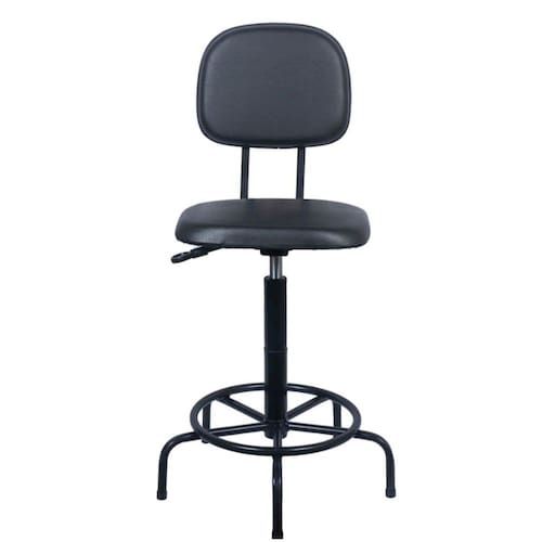 Cadeira caixa alta - L duplo - regulagem de altura - base de ferro fixa corano preto Cadeira secretaria caixa alta - braço com regulagem - apoio para os pés - estrela de ferro - espuma injetada - madeira reflorestada - bordas em pvc flexivel - revestido em tecido j. Serrano anti-chama - prolongador de altura