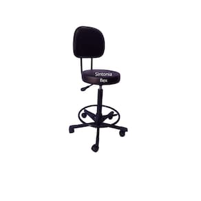 Cadeira caixa alta mocho secretaria com L duplo e aro com base em aço com rodízio corano preta Cadeira caixa alta mocho secretaria - L duplo - apoio para os pés - base em aço com rodízio - madeira reflorestada - espuma injetada anatômica - bordas em pvc flexivel - pintura eletróstática - estrutura em aço. Altura do chão ao assento: Minimo 63cm Máximo 75cm Marca: Sintonia Flex