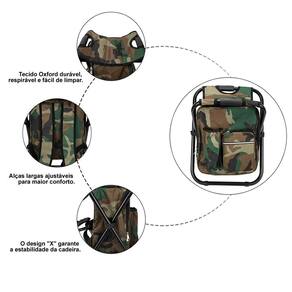 Cadeira Camping Banqueta De Praia Com Bolso Térmico Dobrável Cor: Camuflado Bolsa Térmica Mochila 25 Litros com Banco Camping Pesca Praia