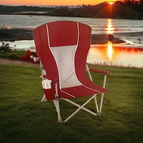 Cadeira extra grande com apoio acolchoado para braços e cabeça. Estrutura de aço resistente para peso máximo de 147 kgs. Bolsa para transporte e armazenamento com alça ajustável. Tecido transpirável e absorvente que elimina a umidade. Suporte giratório para copo. Cadeira com alça prática e ajustável para transporte. Bolsa para transporte inclusa. Dimensões: 69,5 cm diâmetro x 63,5 cm largura x 1,01 m altura.
