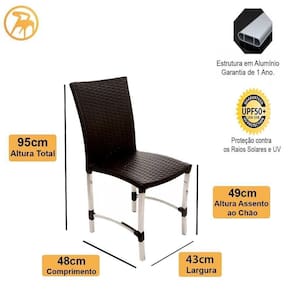 Dimensoes Cadeira Cannes: Altura total: 95 cm Altura assento ao chao: 49 cm Largura: 43 cm Profundidade: 48 cm Suporta ate 200 kg
