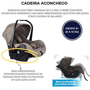 Cadeira de carro bebê conforto grupo 0+ aconchego marrom grena ares Desenvolvido para crianças de 0 a 13kg, o bebê conforto aconchego apresenta uma base arredondada que pode ser Utilizado como cadeira de balanço, proporcionando momentos de tranquilidade para os pequenos em qualquer lugar. O aconchego é compatível com os carrinhos ares, ares plus, apolo E júpiter Da mesma marca, oferecendo ainda mais versatilidade para os pais durante os passeios. Com dois pontos de ajuste de altura do cinto de segurança e uma base base vendida separadamente para uso no carro, este bebê conforto garante segurança máxima durante os trajetos. Sua alça de transporte possui várias posições, facilitando o transporte e oferecendo conveniência para os clientes. E para fechar com chave de ouro, o tecido removível e lavável garante fácil manutenção, deixando os pais satisfeitos com a durabilidade do produto. Principais características: - cinto de segurança de 3 pontos; - concha arredondada compatível com o carrinho ares, ares plus, júpiter e apolo; - 2 pontos de ajuste conforme a altura da criança; - estrutura plástica; - fácil instalação - compatível para uso em automóveis utilizando a base, que é vendida separadamente ; - de 12 meses direto com o fabricante; - inmetro: 004119/2021 Medidas da cadeira aberta: 59x42x71 cm axlxp