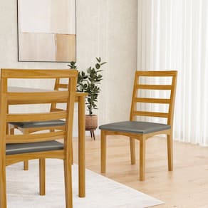 Apresentamos a você a cadeira Cecília, estruturada em madeira maciça com assento estofado com espuma D-23.